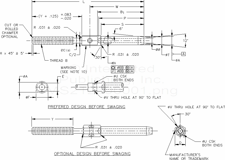 MS21259 Terminal, Wire Rope, Swaging, Stud, Long Thread